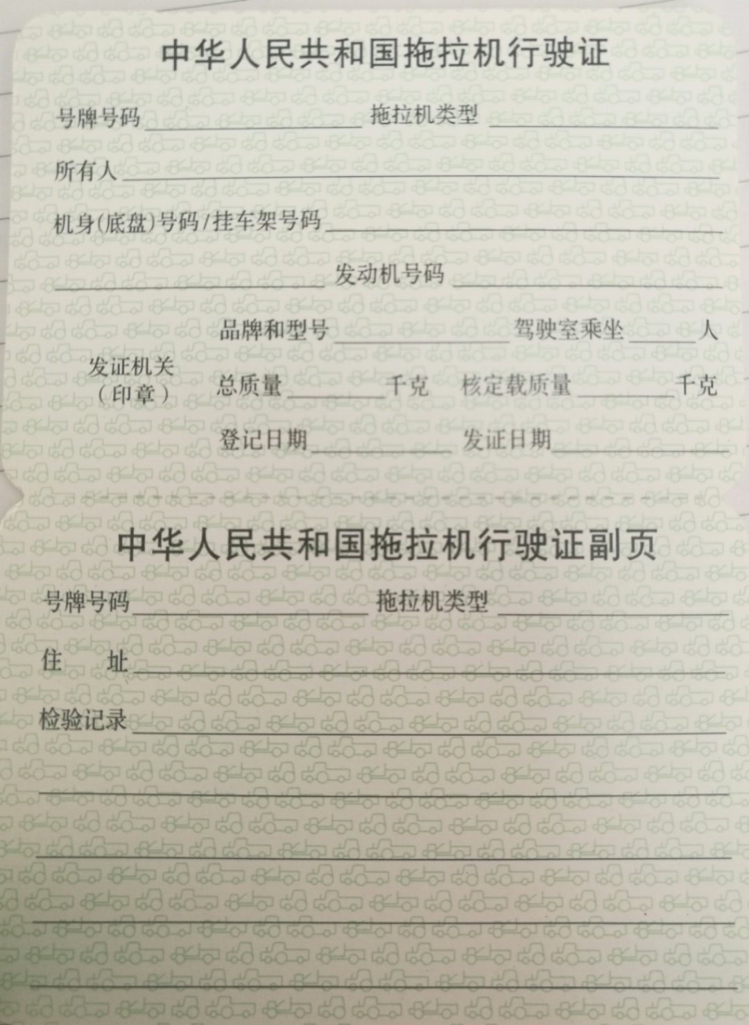 5拖拉机、联合收割机来历证明(注册登记)原件:1 | 复印件:0 | 纸质/电子化