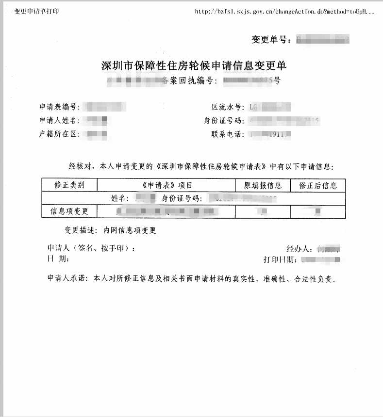 1《深圳市保障性住房轮候申请信息变更表》原件:1 | 复印件:0 | 纸质