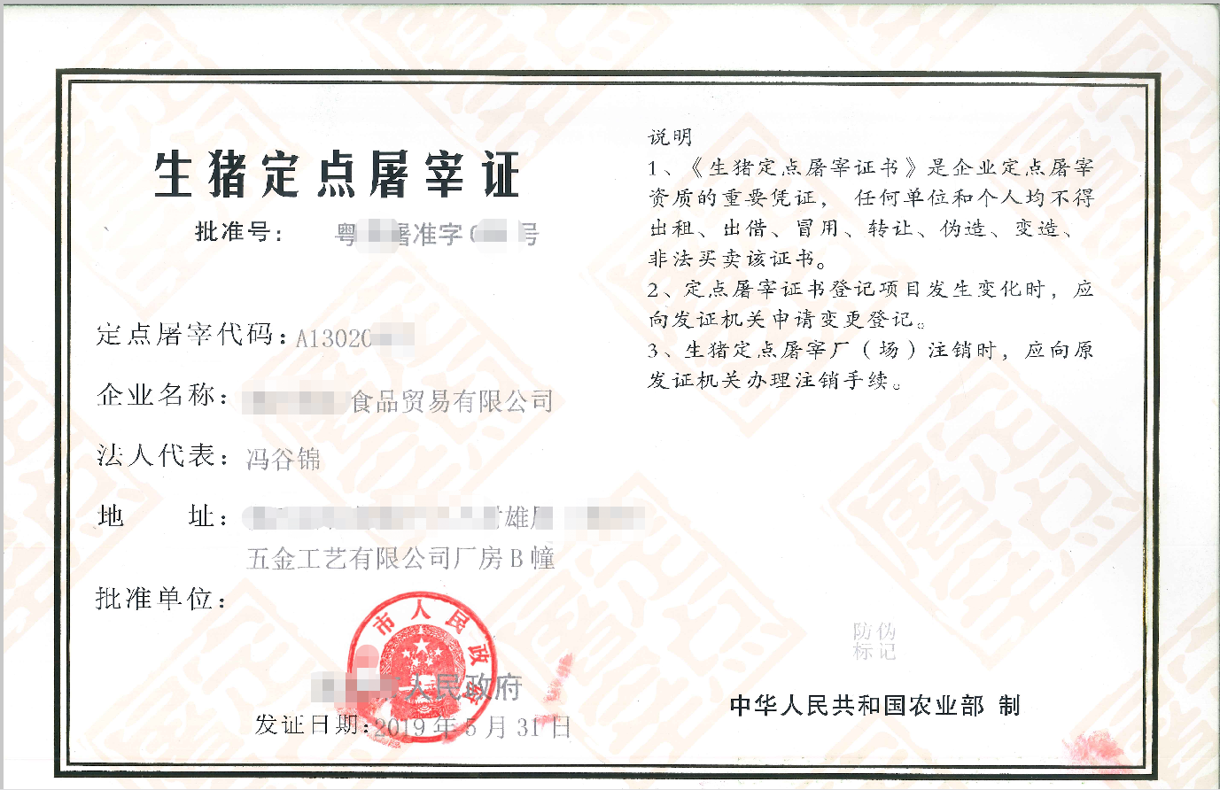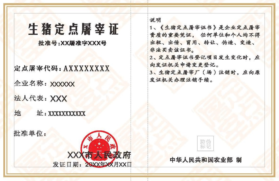 1 | 生猪定点屠宰证 | 证照 | 生猪定点屠宰证.PNG | 生猪定点屠宰证(样例).png | 已关联电子证照 |